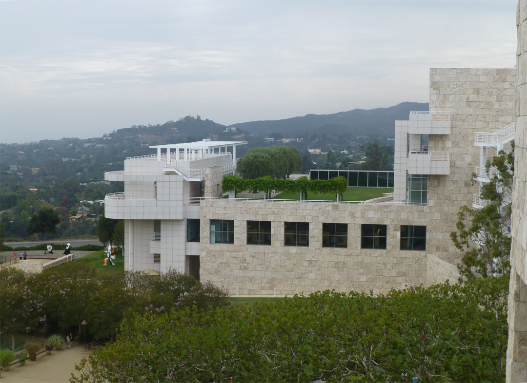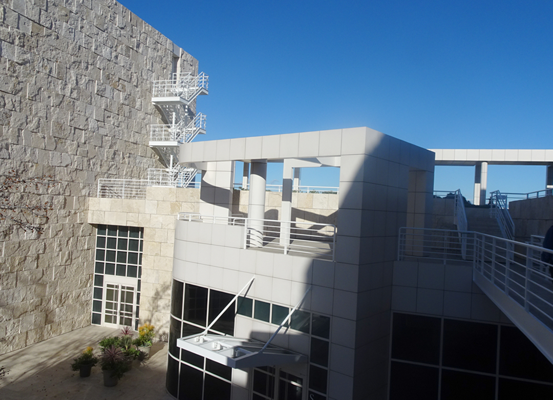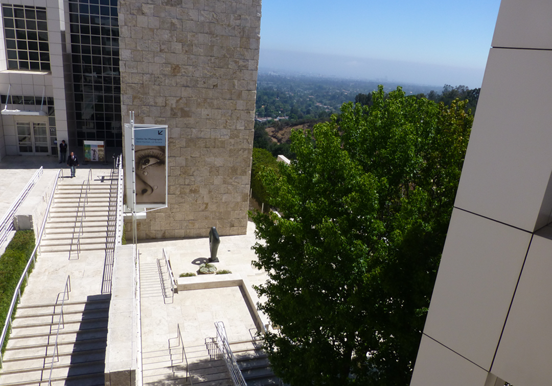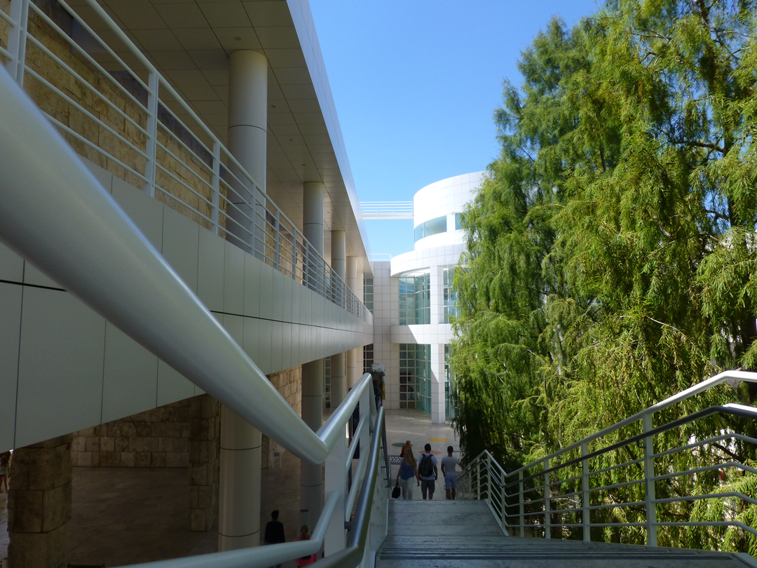 What happened next was the Getty Center. In addition to the Getty Museum, with its dramatic stairway visible from the tram dismounting area, its entrance hall, its four pavilions and courtyard, the trust established the Getty Research Institute, the Getty Conservation Institute, and the Getty Foundation, all of which are integral to the work of the Getty Center.
