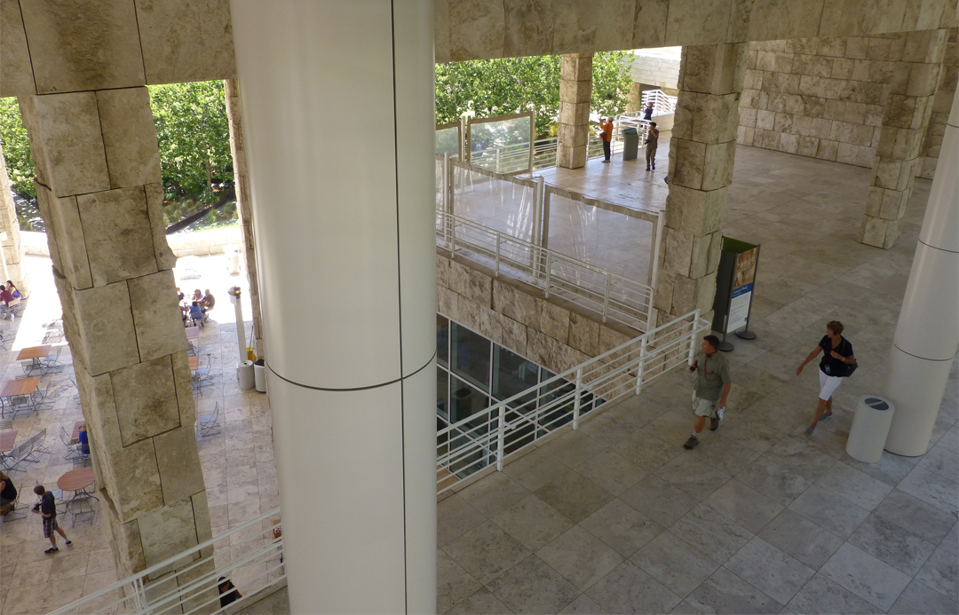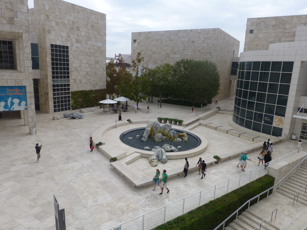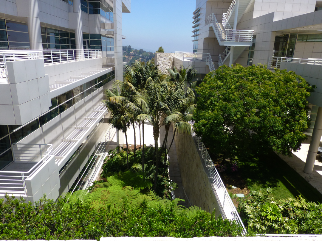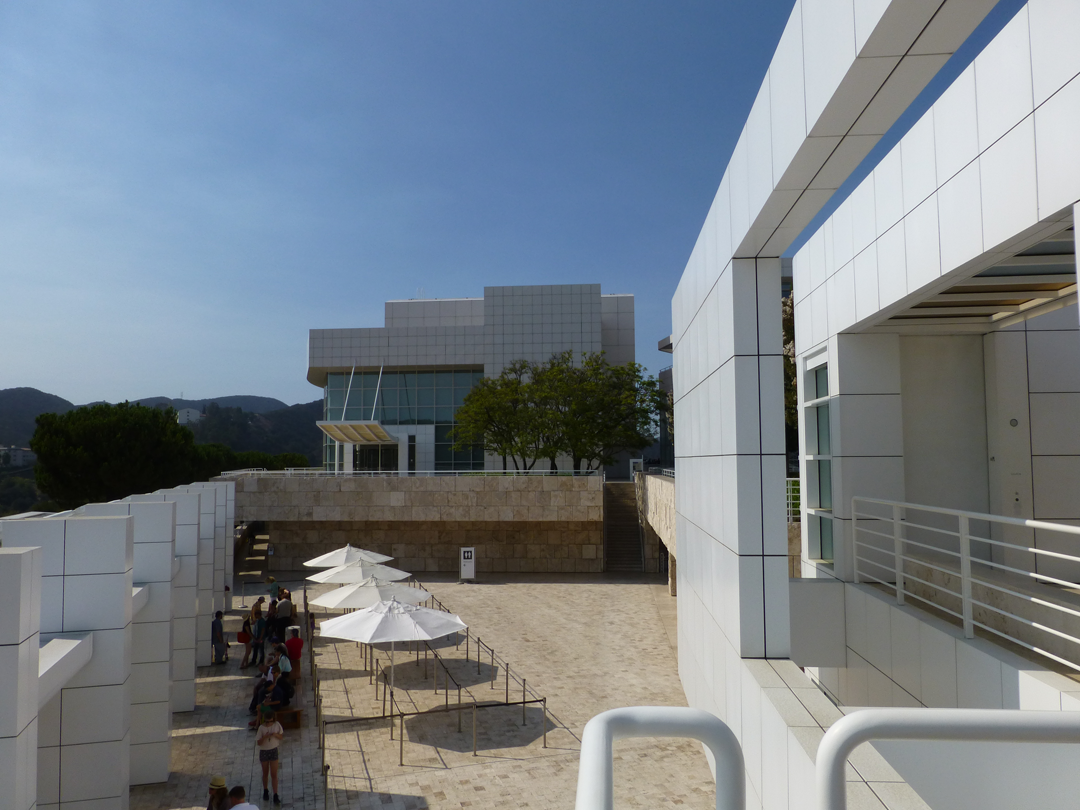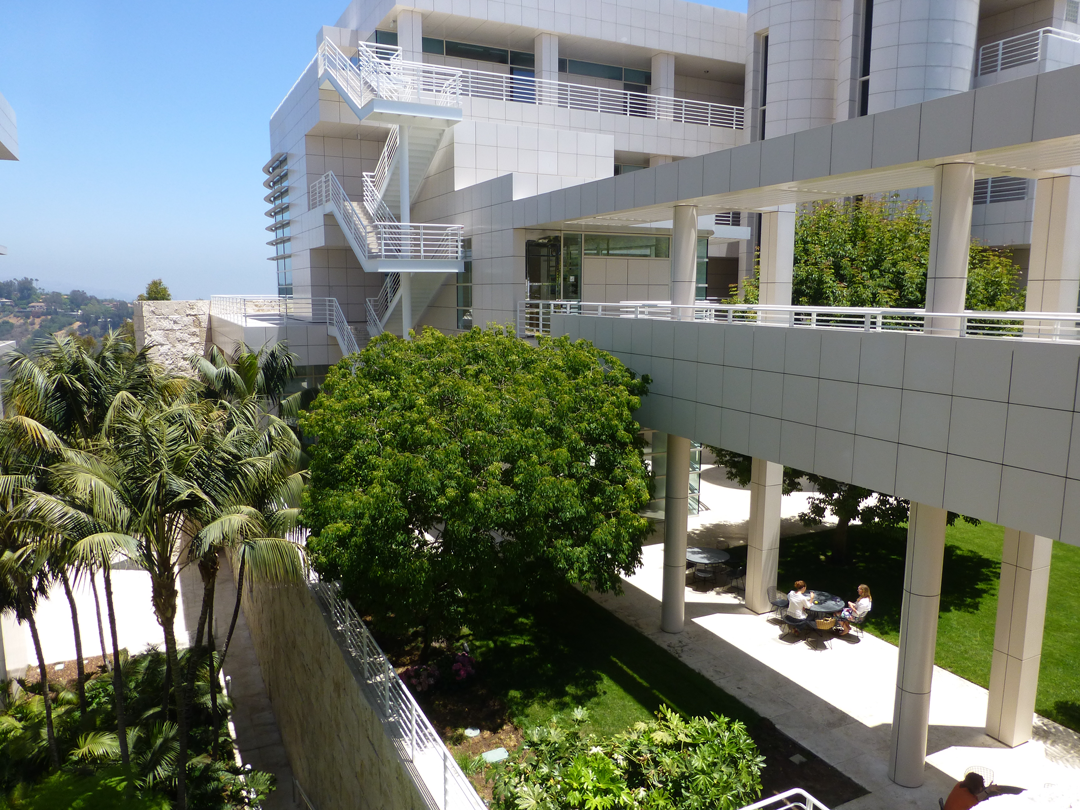 What happened next was the Getty Center. In addition to the Getty Museum, with its dramatic stairway visible from the tram dismounting area, its entrance hall, its four pavilions and courtyard, the trust established the Getty Research Institute, the Getty Conservation Institute, and the Getty Foundation, all of which are integral to the work of the Getty Center.