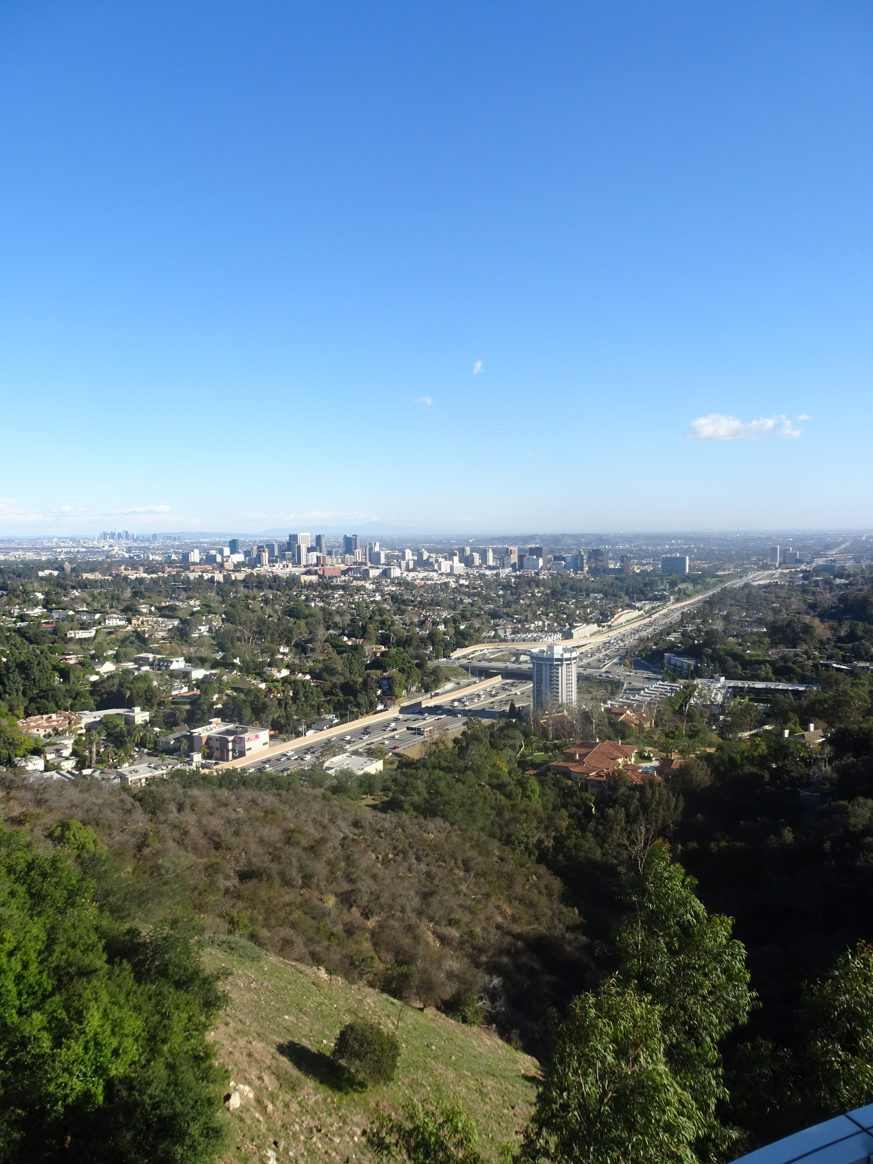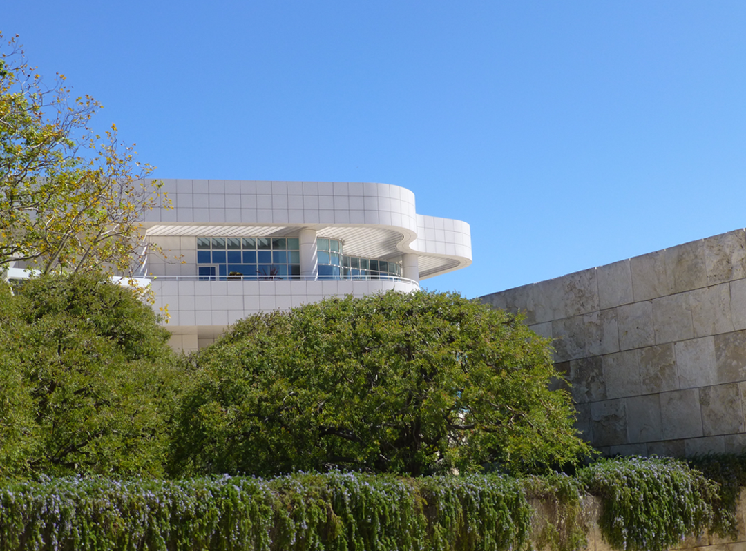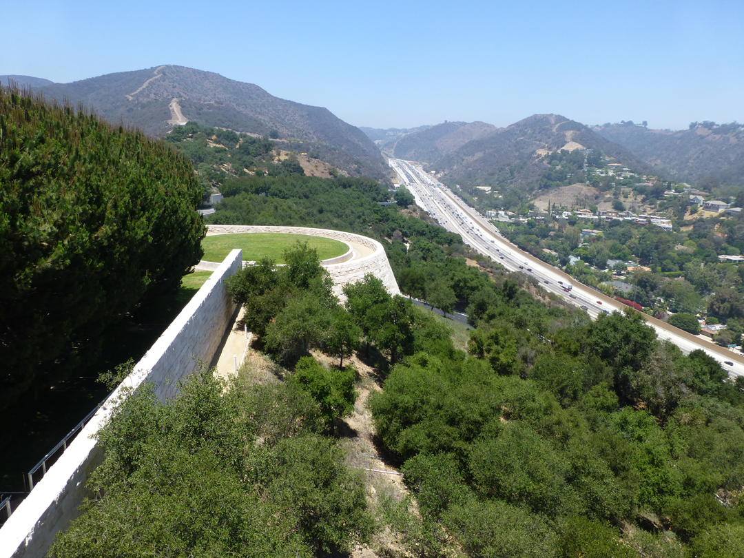 Getty Conservation Institute, as it follows along the river of cars on the 405 (San Diego Freeway; Getty Center rises on the west side of this road).