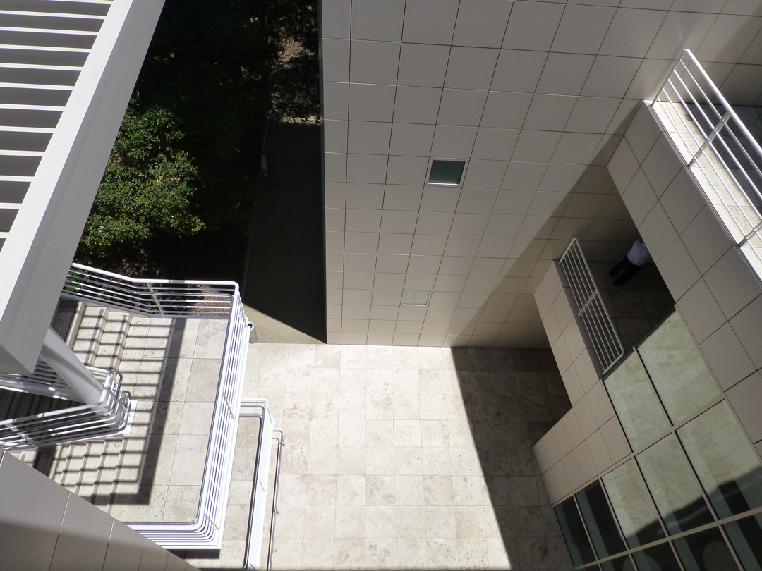 A play of light, shadow, and geometry. Looking downward toward the Museum Courtyard.